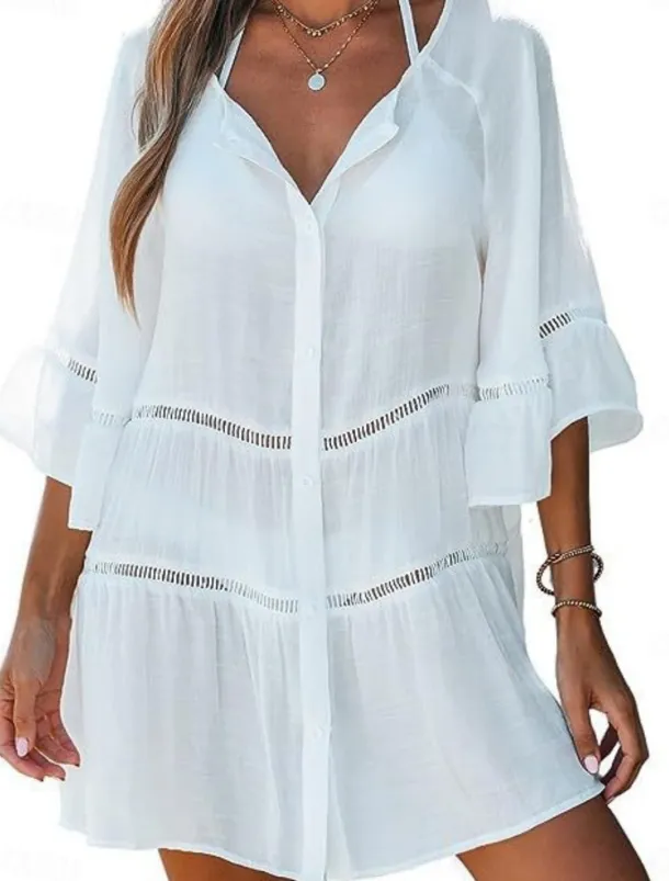 – Flattering V-neckline for a trendy look