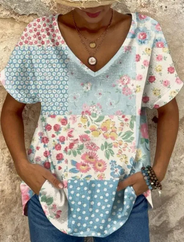 – Flattering V-neck neckline