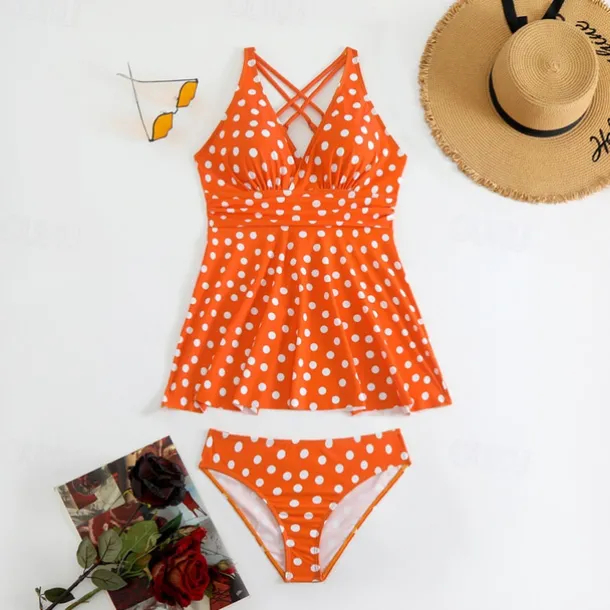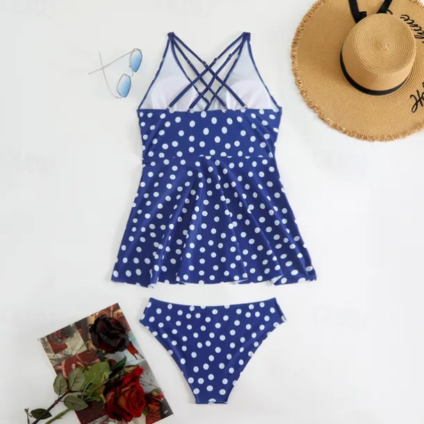 Women’s Tankini Two Piece Swimsuit Criss Cross Swimwear Spot Swimwear Black Blue Breathable Quick Dry Lightweight Sleeveless – Swimming Surfing Beach Summer Spring Plus Size