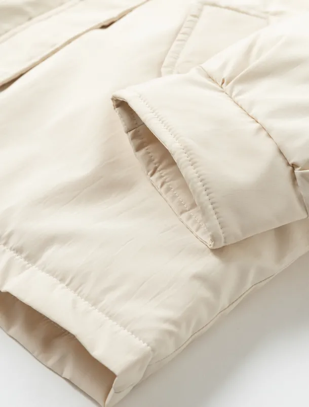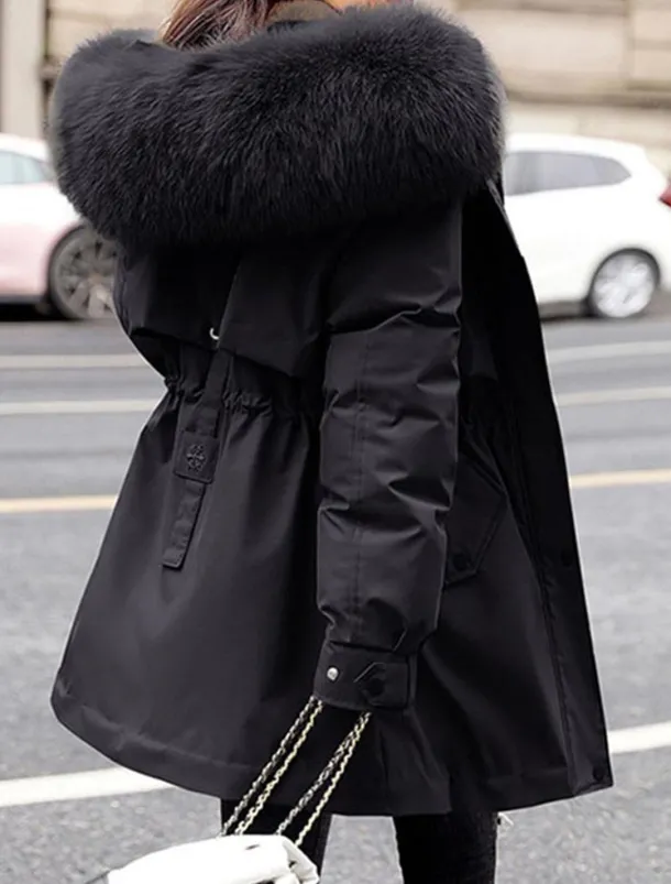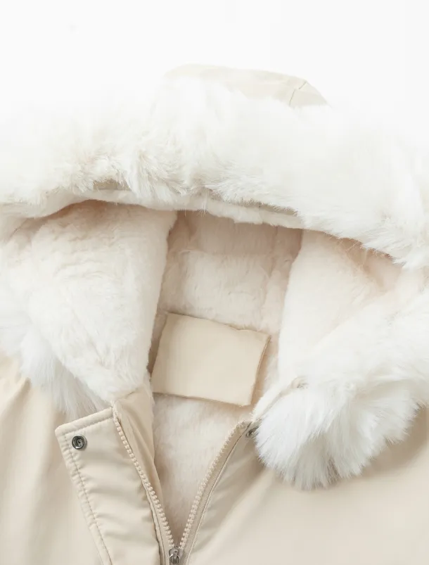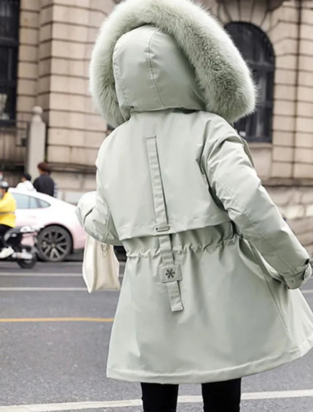 2. Removable Fur: Thicken cotton Coat featuring detachable zip-off faux fur trim for easy customization.