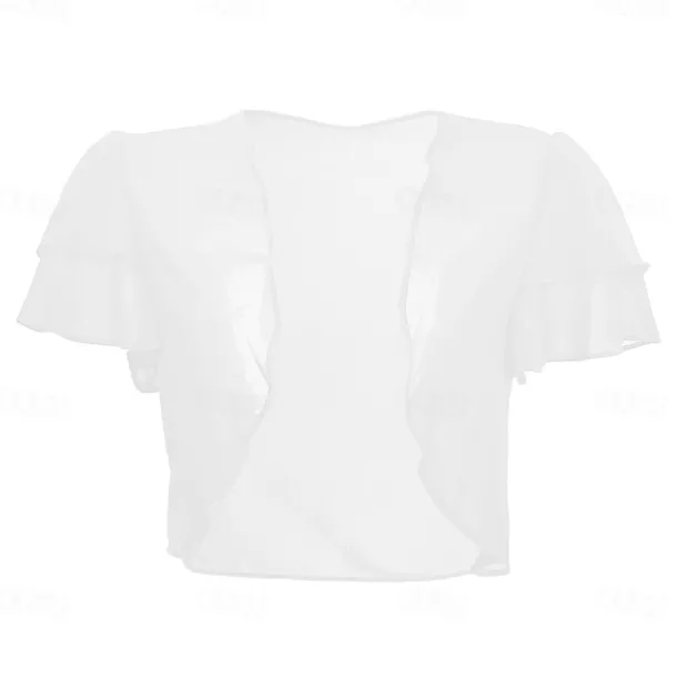 Women’s Wrap Elegant Sun Protection Short Sleeve Chiffon Wedding Wraps With Pure Color For Wedding Summer