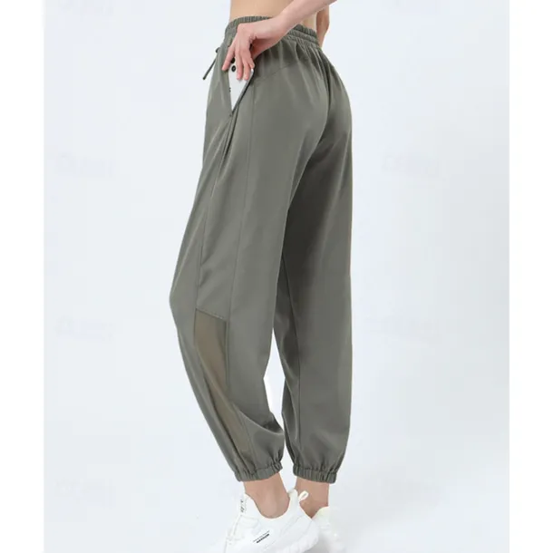 Women’s Yoga Pants Mesh Patchwork Pocket Yoga Fitness Pants Green Sports Activewear Micro-elastic