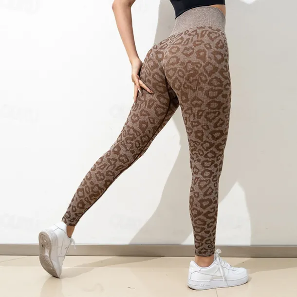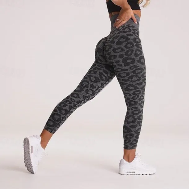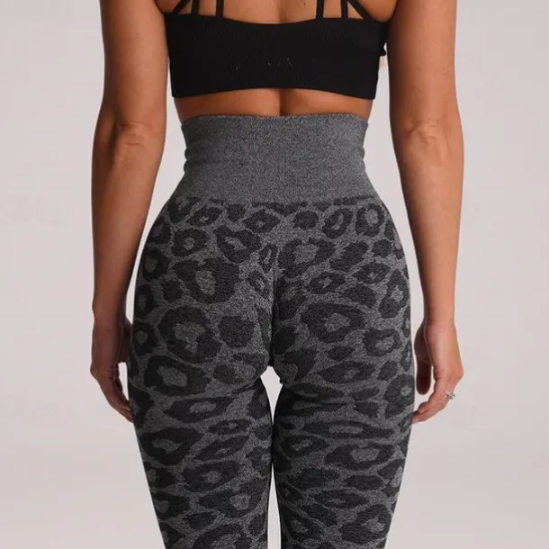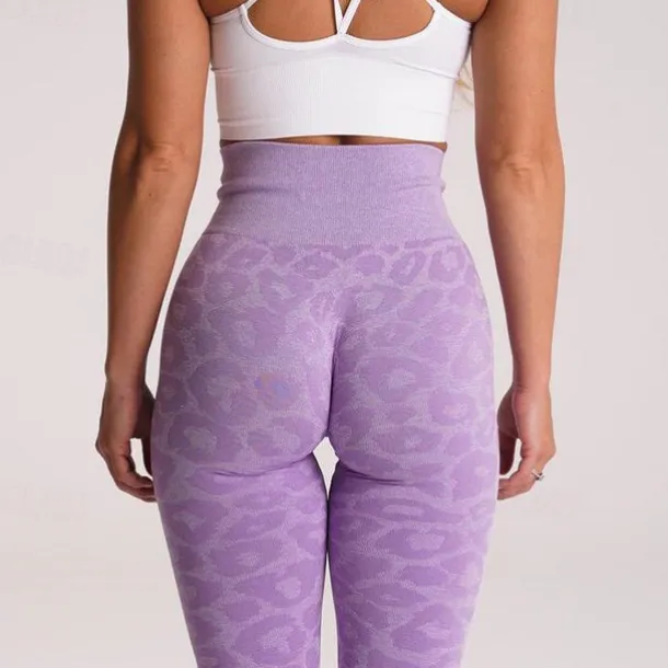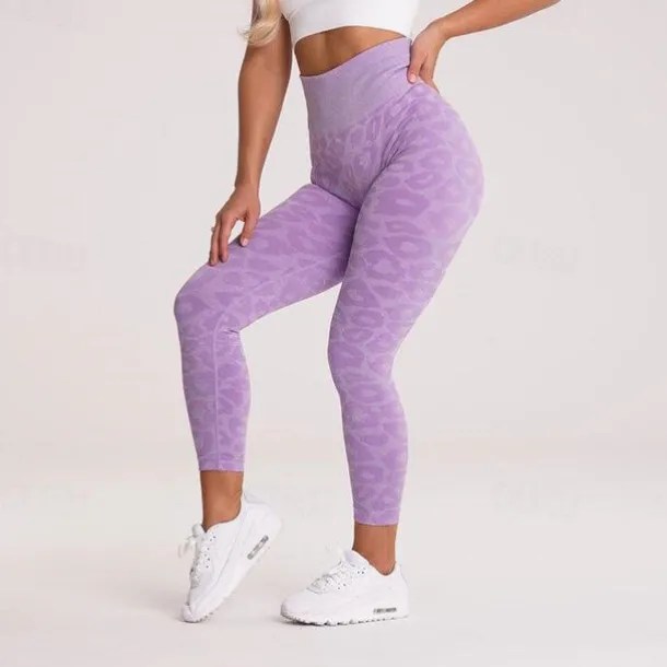 Women’s Yoga Pants Yoga Leggings High Waist Yoga Gym Workout Pilates Tights Leopard Print Black Purple Fuchsia Sports Activewear Stretchy Slim