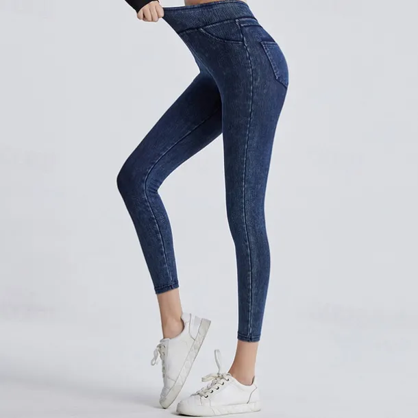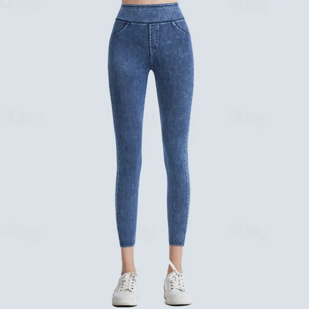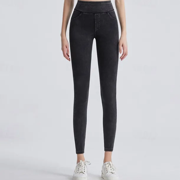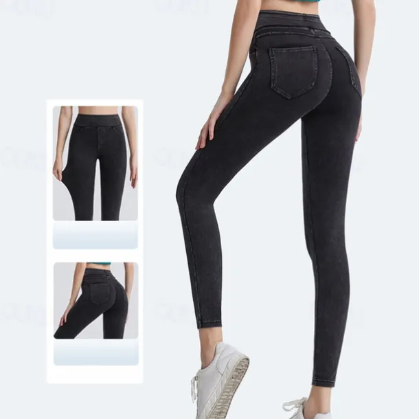 Women’s Yoga Pants Yoga Leggings Jeggings Tummy Control Butt Lift High Waist Yoga Gym Workout Pilates Tights Dark Grey Black Blue Fall Winter Sports Activewear Stretchy Slim