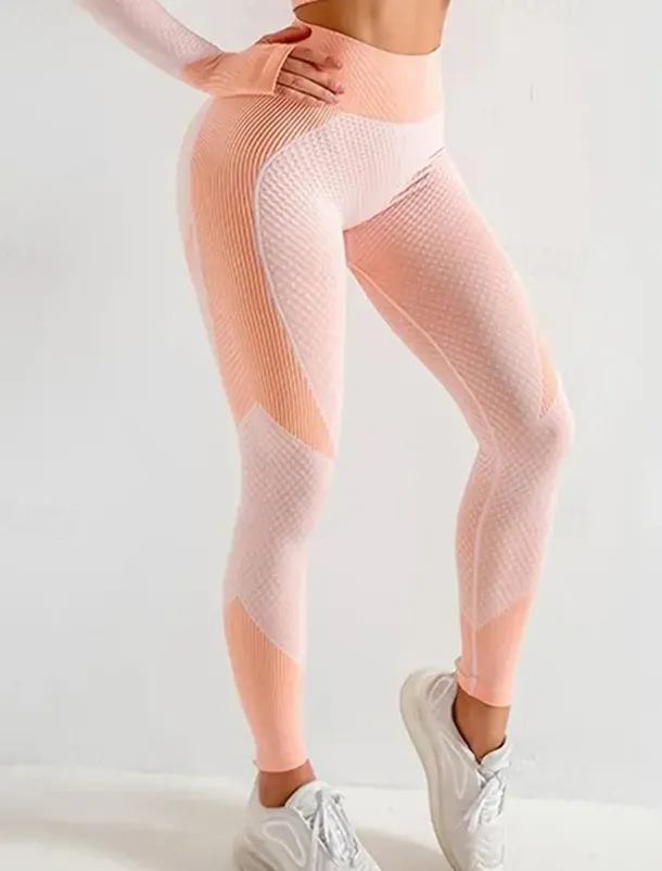 Women’s Yoga Pants Yoga Leggings Patchwork Tummy Control Butt Lift High Waist Yoga Gym Workout Pilates Tights Striped Pink Spandex Fall Sports Activewear Stretchy Skinny