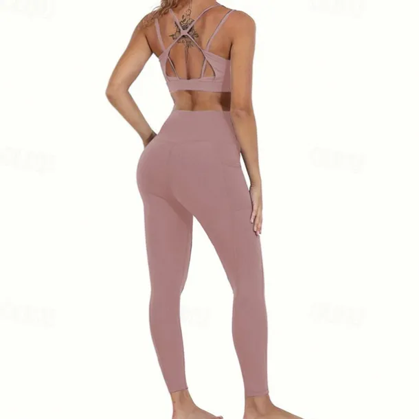 Women’s Yoga Pants Yoga Leggings Pocket High Waist Yoga Gym Workout Pilates Tights Black Pink Light Blue Spandex Fall Sports Activewear Stretchy Slim