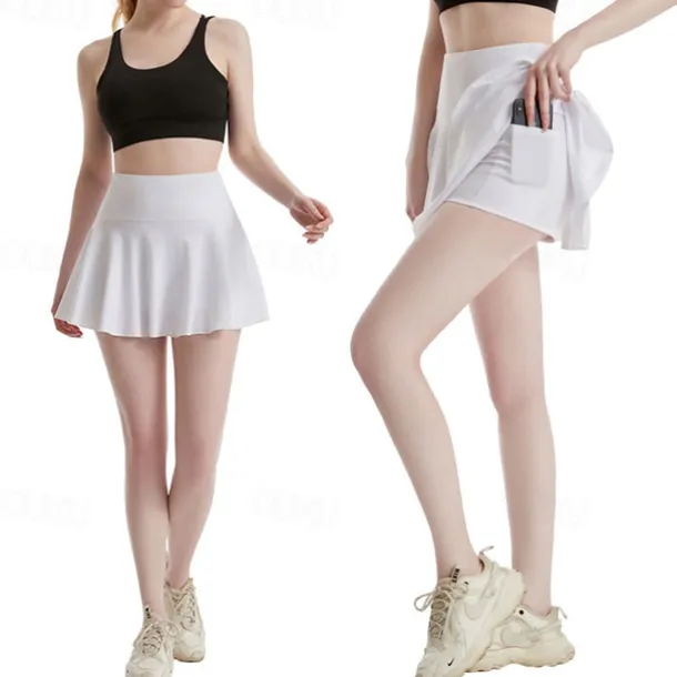 Women’s Yoga Skirt with Phone Pocket High Waist Yoga Gym Workout Pilates Shorts Black White Light Purple Sports Activewear Stretchy Slim