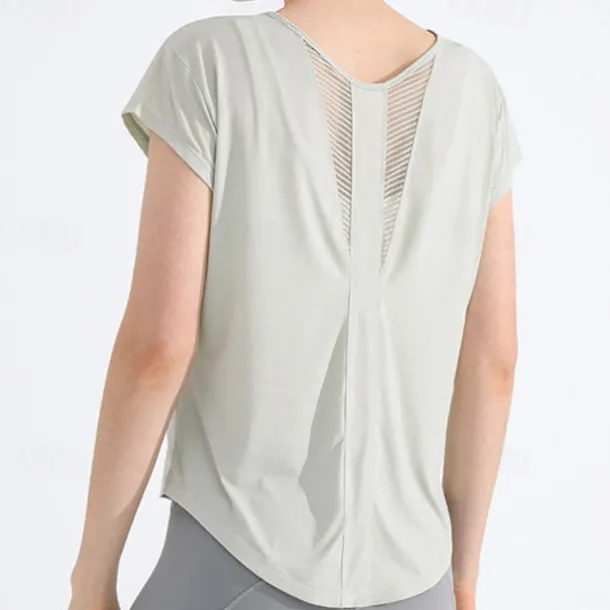 Women’s Yoga Top Crew Neck Quick Dry Lightweight Breathable Mesh Short Sleeve Sports Solid Color Tee Tshirt Top For Running Fitness Yoga Loose Fit Activewear