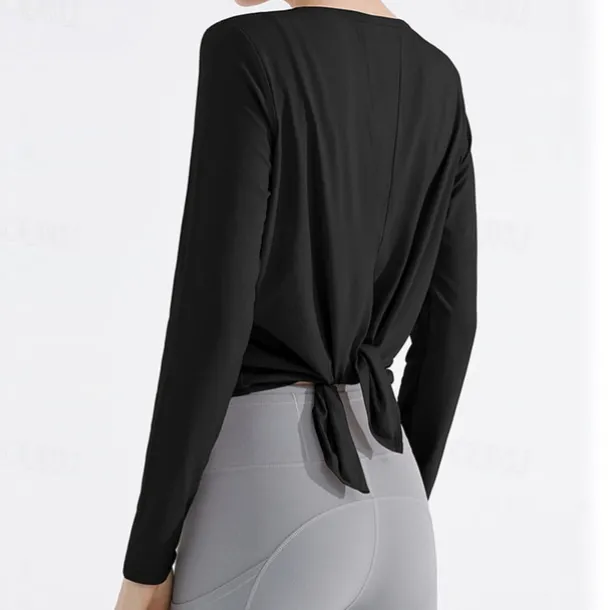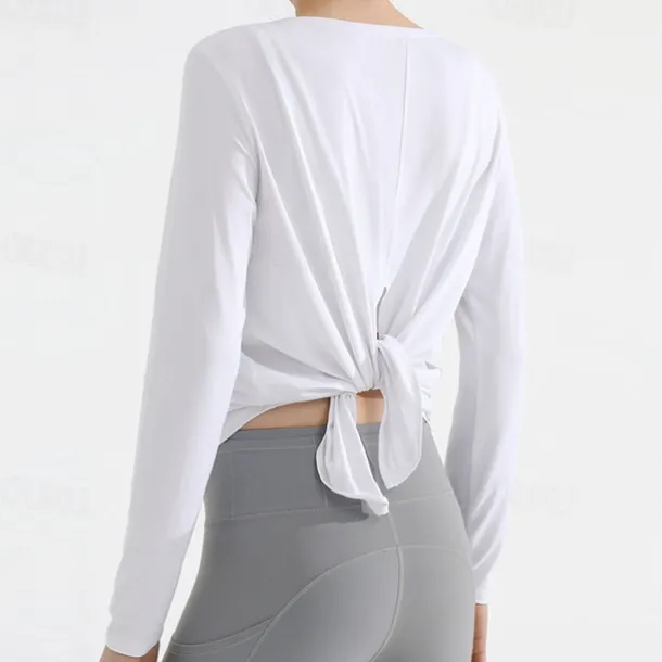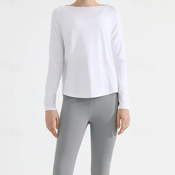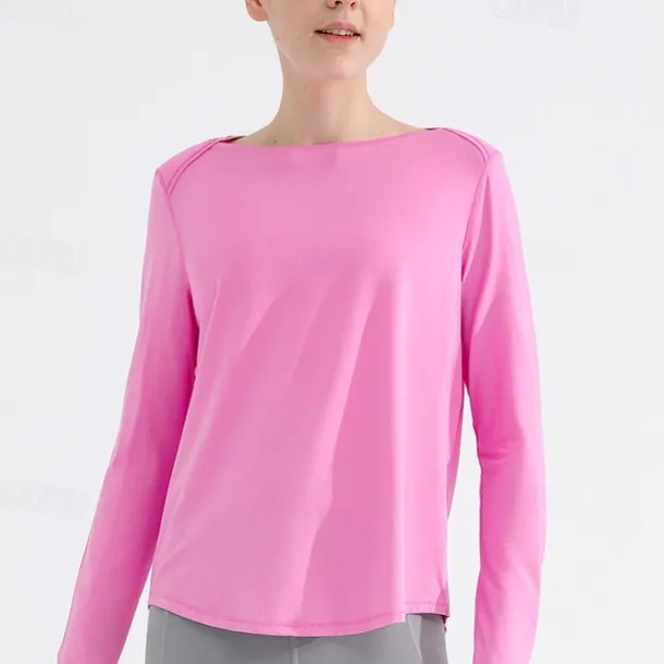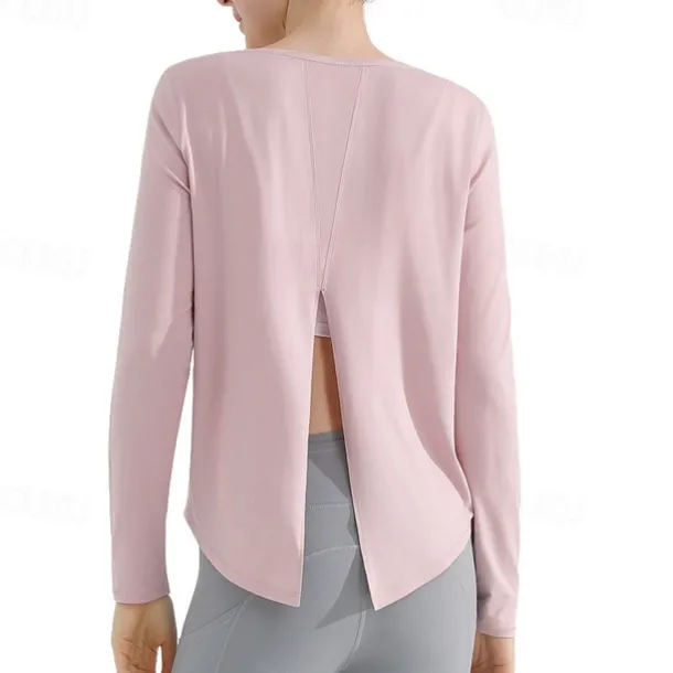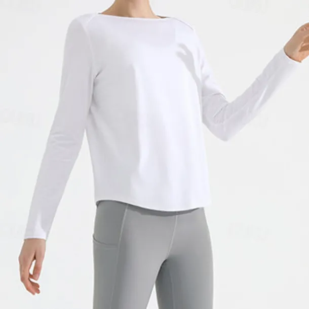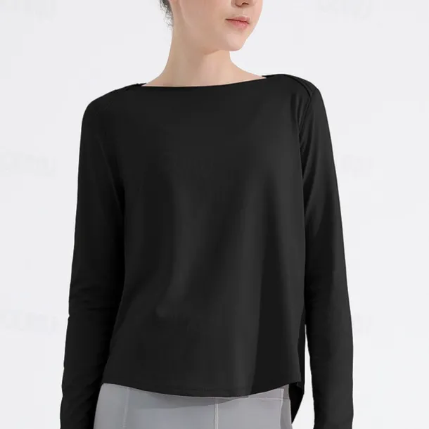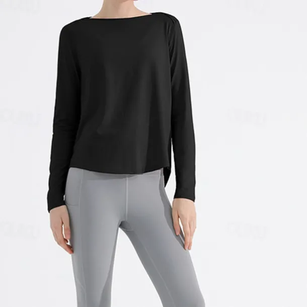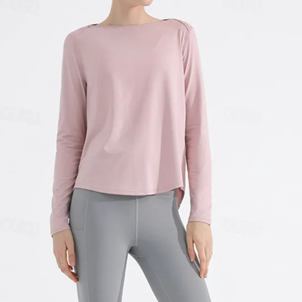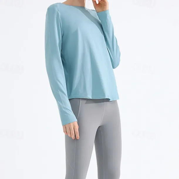 Women’s Yoga Top Crew Neck Quick Dry Lightweight Breathable Split Long Sleeve Sports Solid Color Tee Tshirt Top For Running Fitness Yoga Loose Fit Activewear