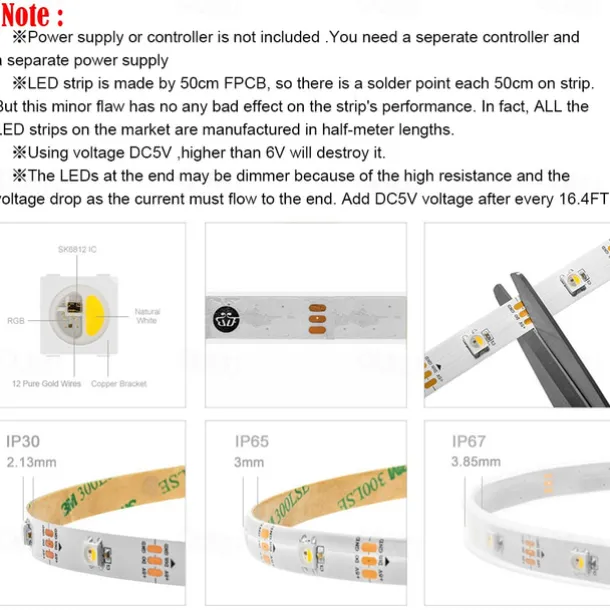 WS2812 RGBIC Addressable LED Strip Light Dream Color Strip Light 8.2FT/16.4FT 20Pixels/m Waterproof Black and White PCB Flexible DC12V Chase Effect Suitable for Indoor and Outdoor Activity Atmosphere Decoration