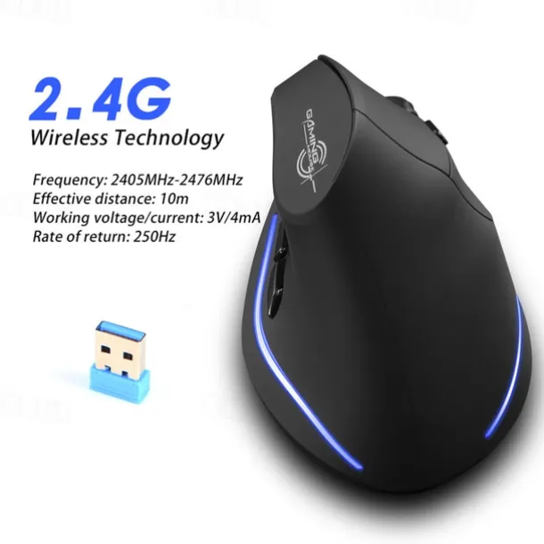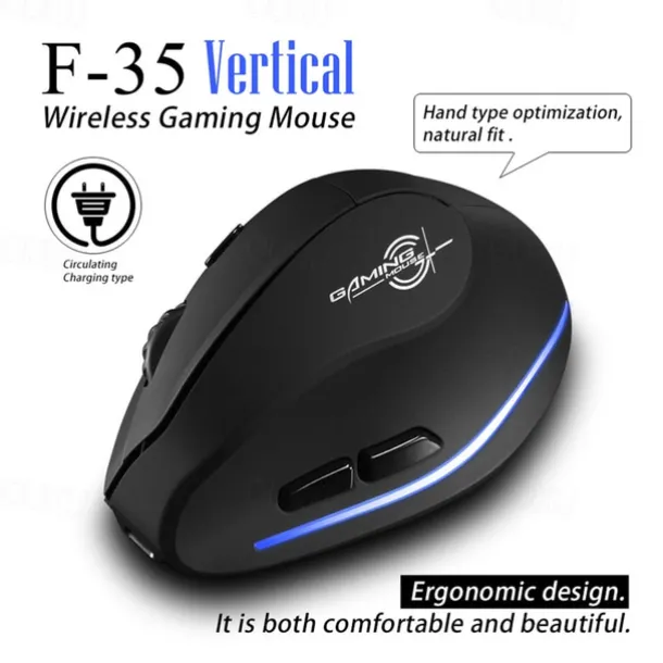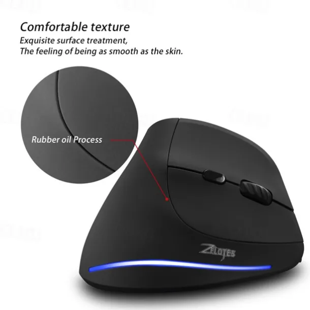 ZELOTES F-35 Wireless 2.4GHz Rechargeable Vertical Mice 6 Buttons 2400 DPI Adjustable Ergonomic Optical Gaming Computer Mouse