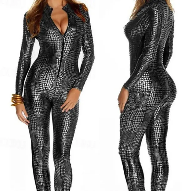 Zentai Suits Cosplay Costume Catsuit Cater Motorcycle Girl Carnival Costume Full Body Suit Women’s Solid Color Cosplay Sexy Costume Animal Snakeskin Costume for Halloween Carnival Masquerade Adults’