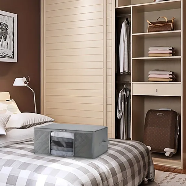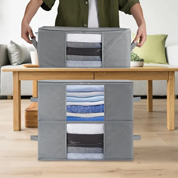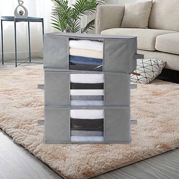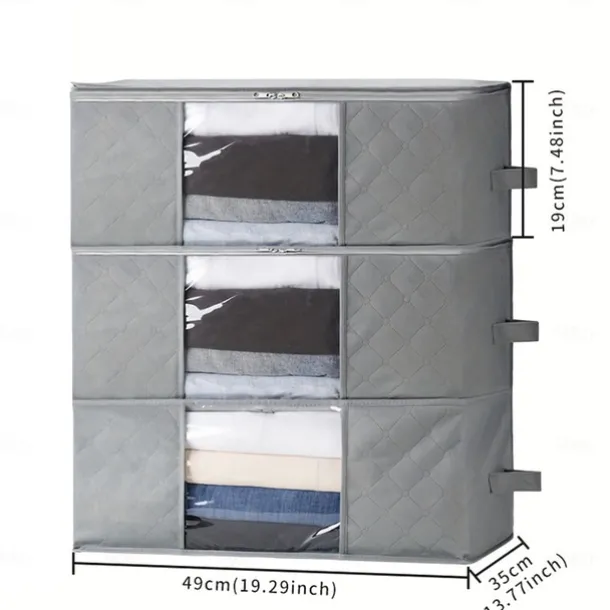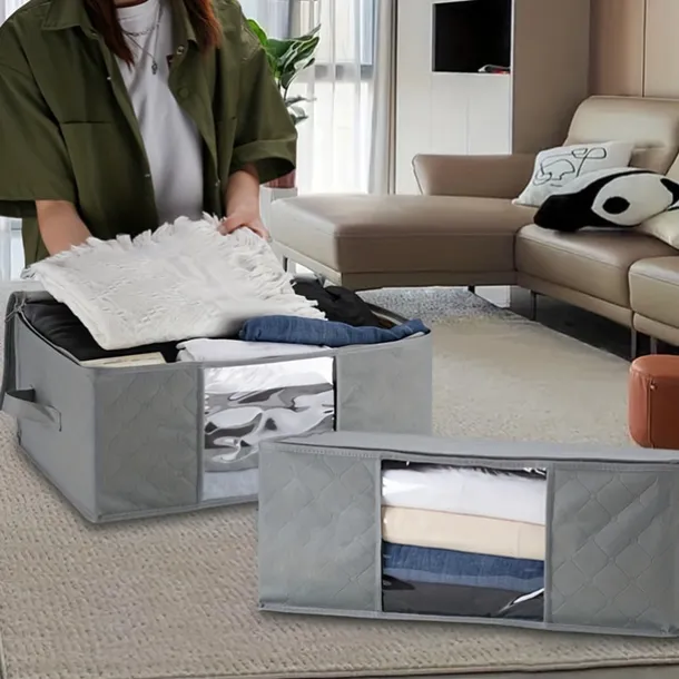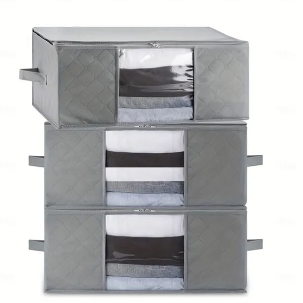 1/2/3pcs Foldable Storage Bag Set with Handles & Lids – Versatile Organizer for Clothes Bedroom Kitchen Bathroom Supplies – Durable Non-Woven Fabric TSA Approved – Gray