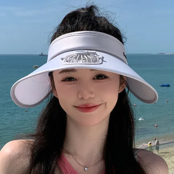 1 Pc Women’s USB Rechargeable Fan Hat Sunscreen Hat Beach Vacation Camping Wide brimmed Sunscreen Hat