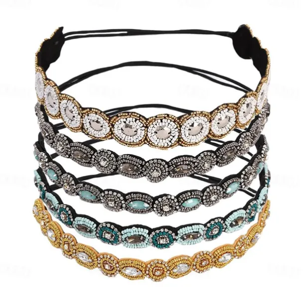 1 Pieces Rhinestone Beaded Elastic Headband Jewel Headbands Pearl Hair Band Crystal Beaded Women Head Wrap Lady Girls Hair Jewelry Accessories