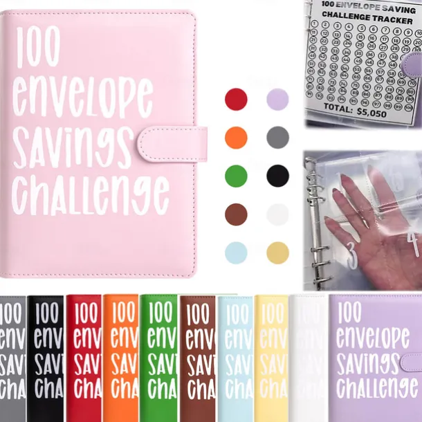 100 Envelopes Money Saving Challenge , Budget Planner Savings Challenge , 2023 New Budget Book Binder With Cash Envelopes ,Savings Challenges Notebook Binders To Save $5,050