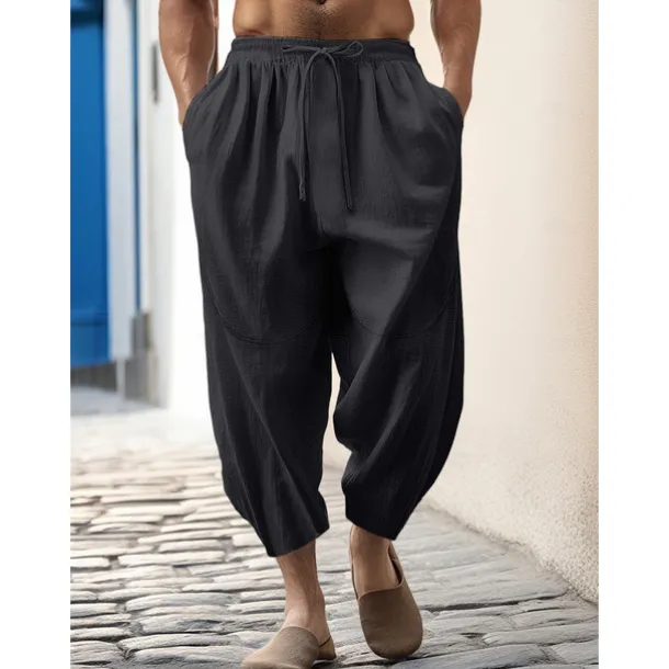 100% Linen Men’s Linen Pants Trousers Summer Pants Tapered Carrot Pants Pocket Drawstring Elastic Waist Plain Breathable Comfortable Daily Vacation Going out Classic Casual Black White