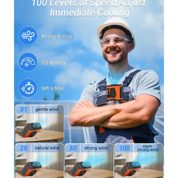 100 Speeds Portable Waist Fan Rechargeable Personal Body Fan, 10000mAh 40H Cooling 20000RPM Flashlight for Outdoor Jobsite Camping Travel Power Bank