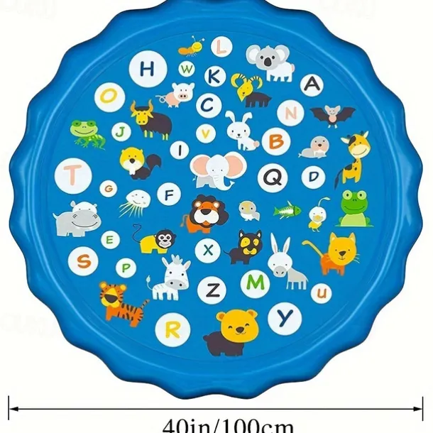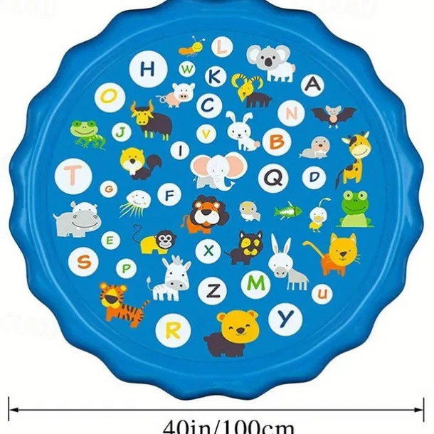 100cm/39.37in Extra Large Luxury Outdoor Toy – Portable Swimming Pool with Water Sprinklers, Alphabet & Number Learning Mat, Vibrant Rainbow Design, PVC Material, Ideal for Youngsters Aged 3-5, Summer