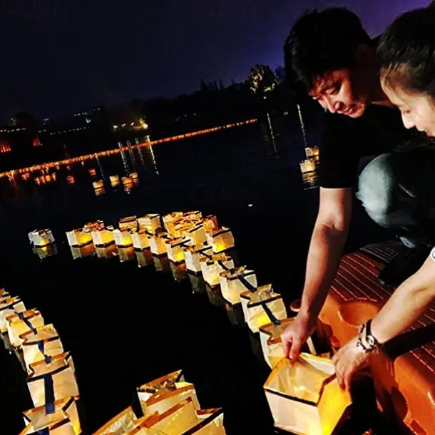 10PCS Square Paper Lantern With Floating Water Lanterns For Wedding Birthday Party No Candle 15X15CM/6“X6“