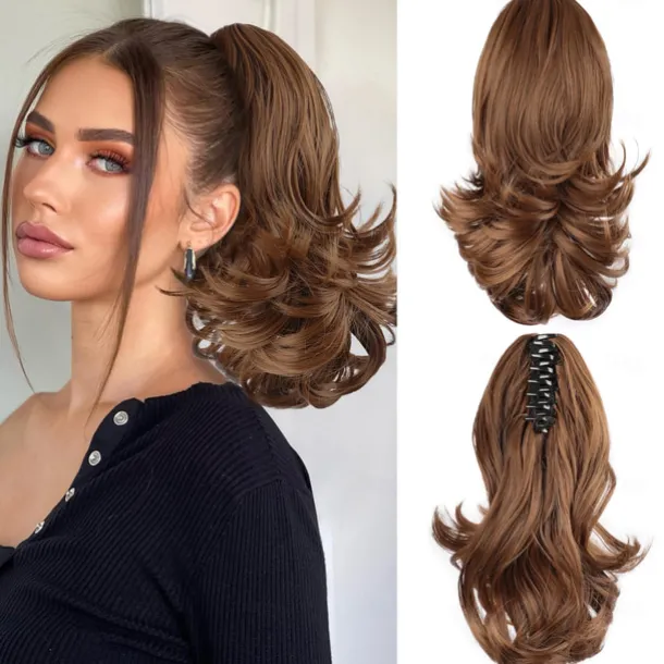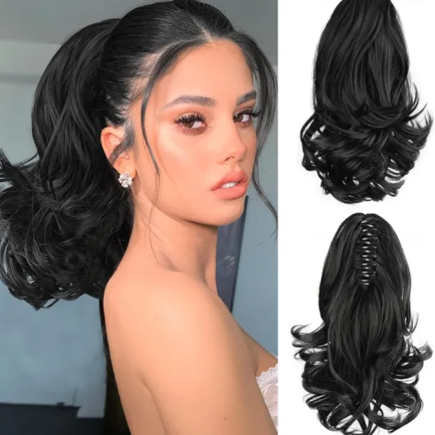12 Inch Pony Tails Hair Extensions, Short Thick Ponytail Extension Clip in Claw Pony Tails Hair Extensions for Women Natural Curly Fake Ponytail Hair Piece for Daily Use