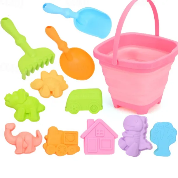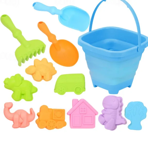 12 Pack Collapsible Foldable Beach Sand Buckets and Shovels Set – Beach Toys for Kids with Sand Molds Silicone Beach Sand Pails for Travel Kids and Toddlers