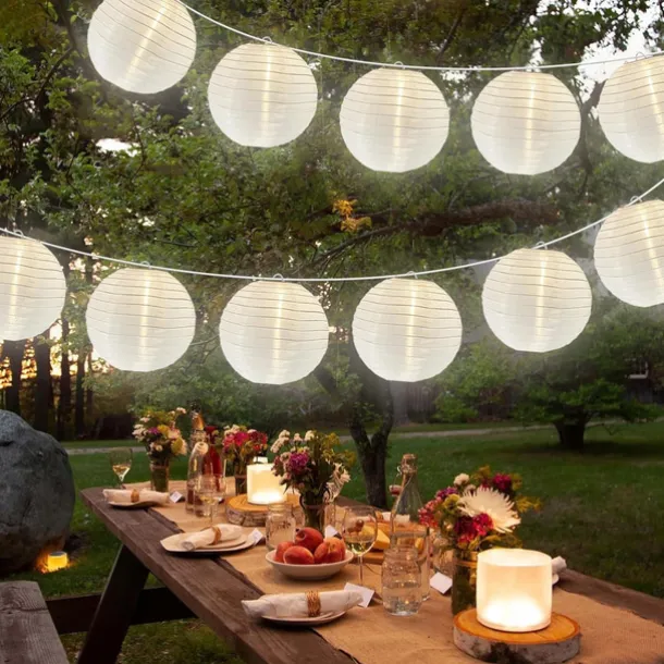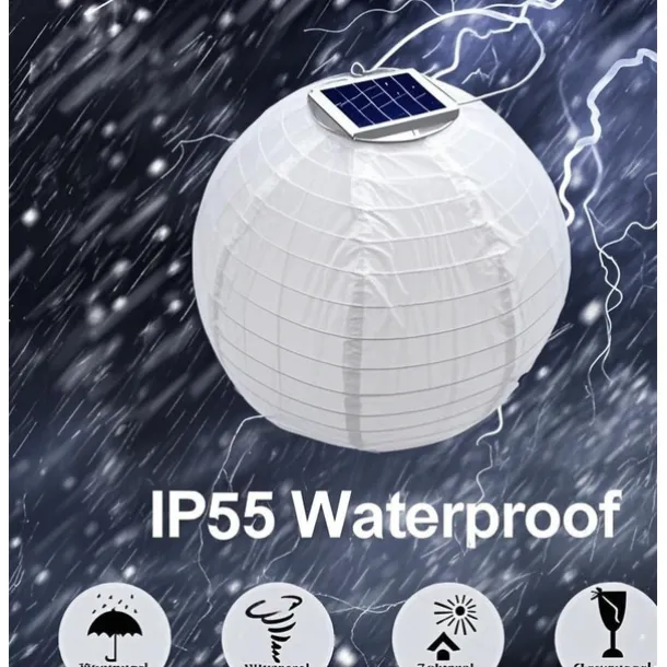 12″ Solar Paper Lanterns Powered Lanterns Waterproof Outdoor Nylon Cloth Paper Lantern Lamps Garden Hanging
