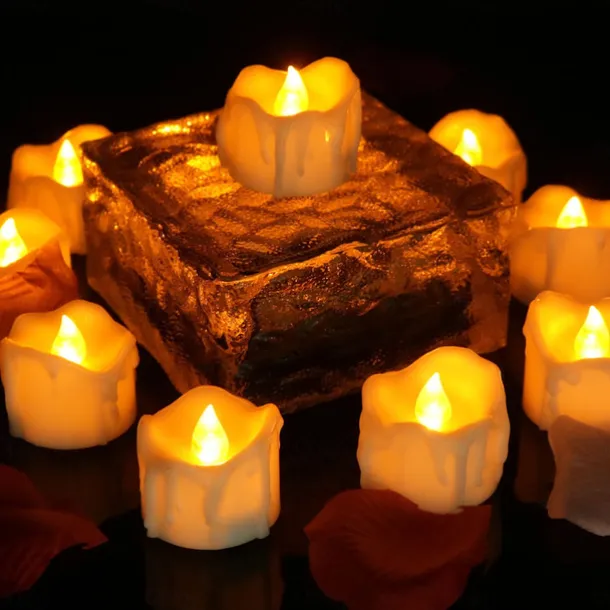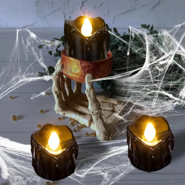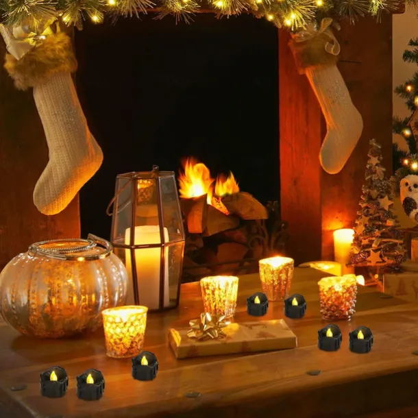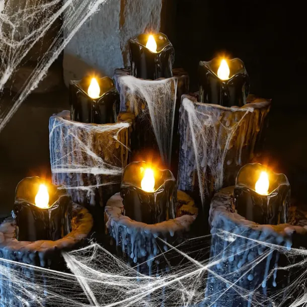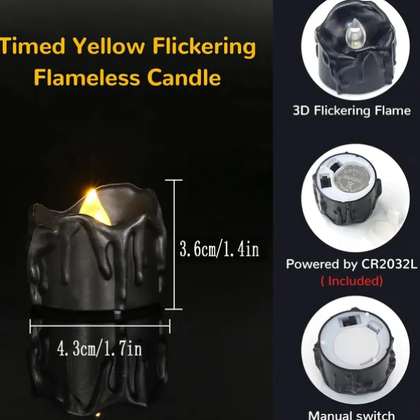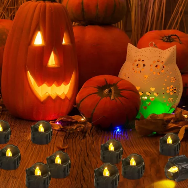 12pcs Black LED Tea Lights Halloween Night Lights Candle Lights Outdoor Indoor Garden Halloween Decor Halloween Electric Candles Battery Powered Halloween Lanterns Holiday Party Decorations