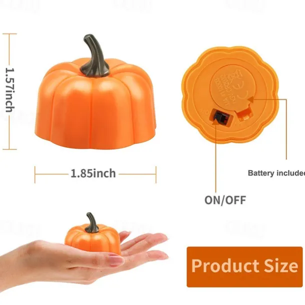 Type: Decorative Lights, Style: Halloween, Quantity: 12pcs, Shape: Pumpkin, Power Supply: Button Battery Powered, Control Mode: ON / OFF,