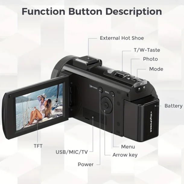 16X Digital Zoom Ultra HD 30FPS Digital Video Camera Camcorder with 3inch IPS 270 Degrees Rotation Screen Remote Control and 1500mah Battery for Vlogging