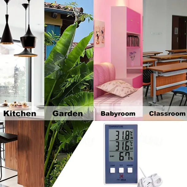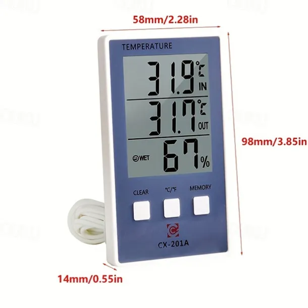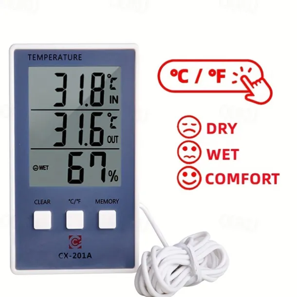 1pc Accurate Digital Thermometer and Hygrometer with LCD Display and Probe Sensor for Indoor and Outdoor Temperature and Humidity Measurement