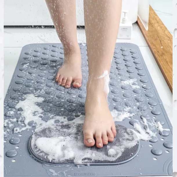 1pc Bathroom Rubber Non-slip Mat – Shower Foot Mat With Draining Holes & Suction Cups – For Bathroom Kitchen Laundry & Bedroom – Suitable for Wet Surfaces – Perfect Gift for Housewarming