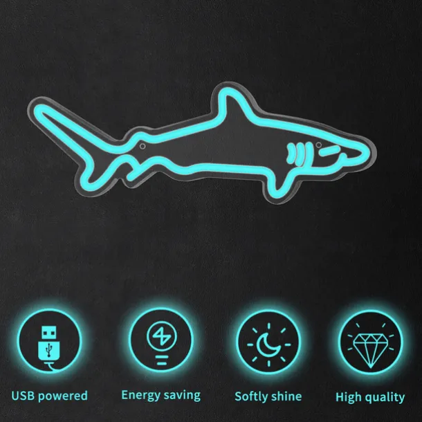 1pc Blue Shark LED Neon Light Sign, USB Powered Neon Sign Light for Home Bedroom Aquarium Zoo Bar Club Pub Party Wall Art Decoration Hanging Light