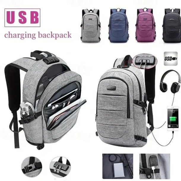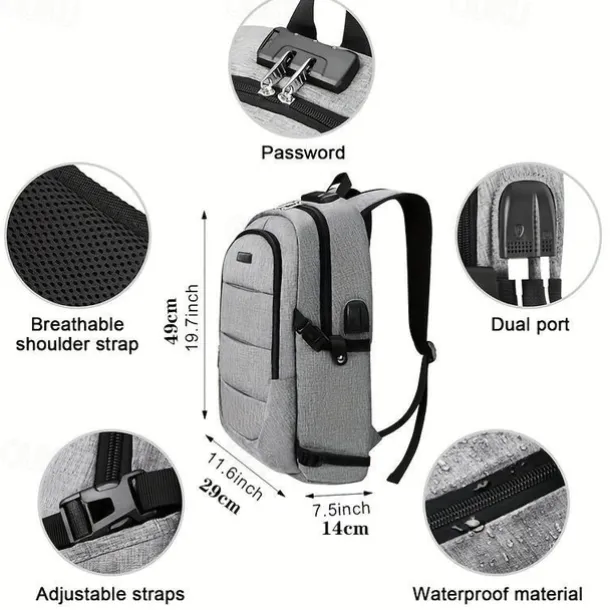 1pc Large Capacity Laptop Storage Backpack Schoolbag For Outdoor Camping Travel Anti-theft Waterproof Sports Bag With USB Charging Port Father’s Day Gift Birthday Gift