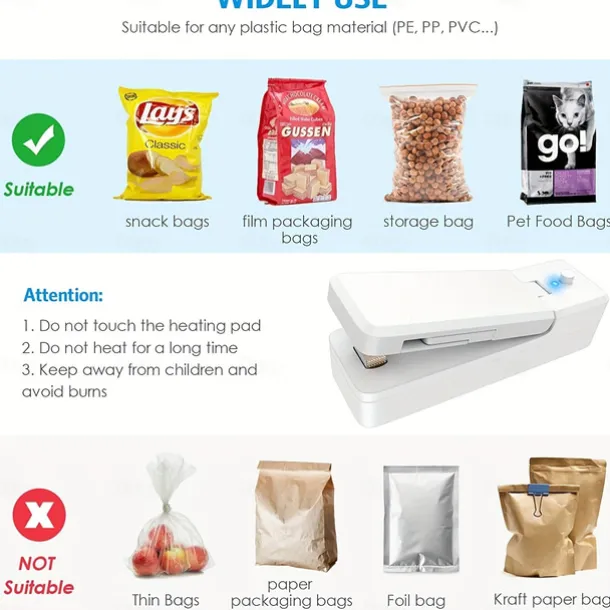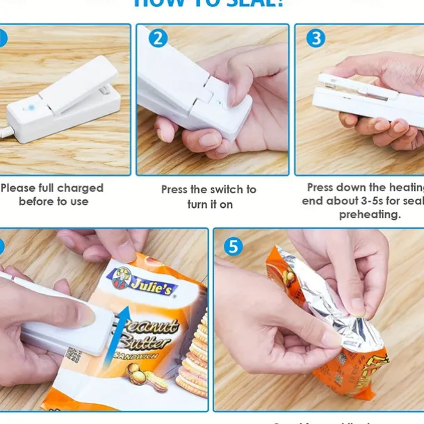 1pc Mini Bag Sealer, USB Rechargeable Portable Sealing Machine, Handheld Heat Vacuum Sealers For Plastic Bags, Kitchen Tools