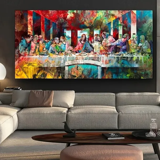 1pc Modern Artistic Graffiti Painting of ‘The Last Supper’ – Home Decor Wall Art for Corridor Porch or Any Room