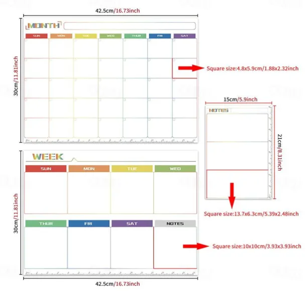 1pc Notes Wallpaper Magnetic Monthly/Weekly/Daily Planner Calendar Table Dry Erase Whiteboard Blackboard Fridge Sticker Message Board Menu