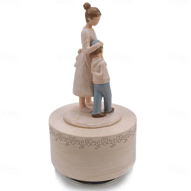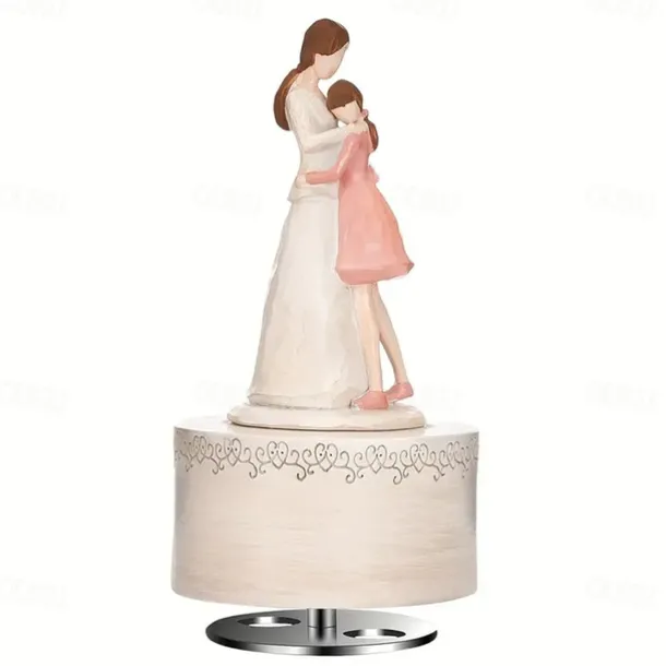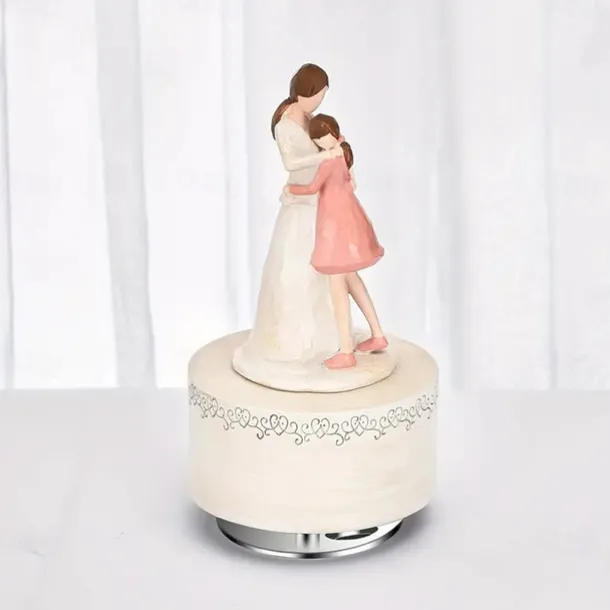 1pc Resin Musical Box 5.5 Inch Mother-Daughter Figurine Ideal Gift For Mom From Daughter For Birthday Mothers Day Gift For Home Room Living Room Office Decor