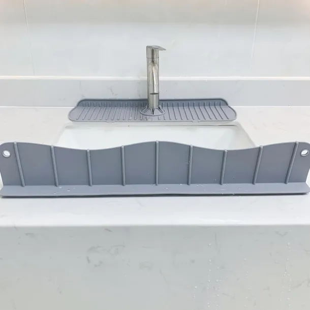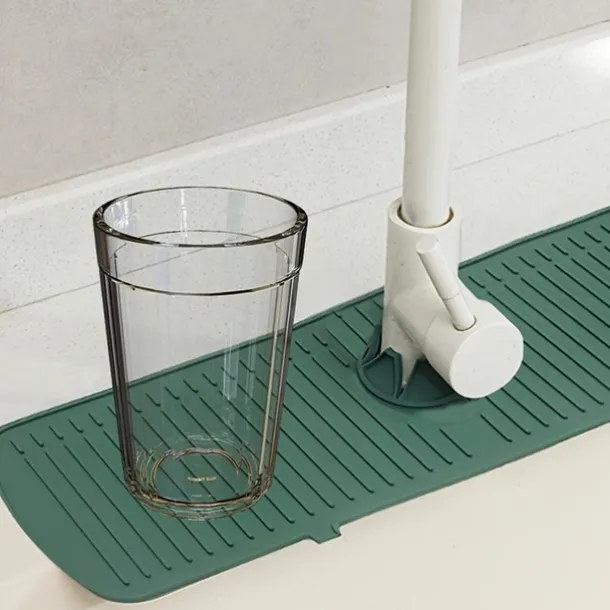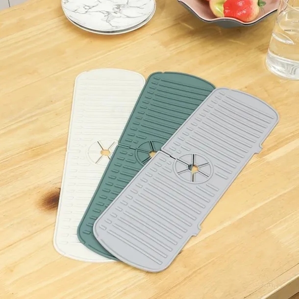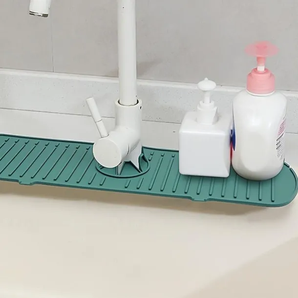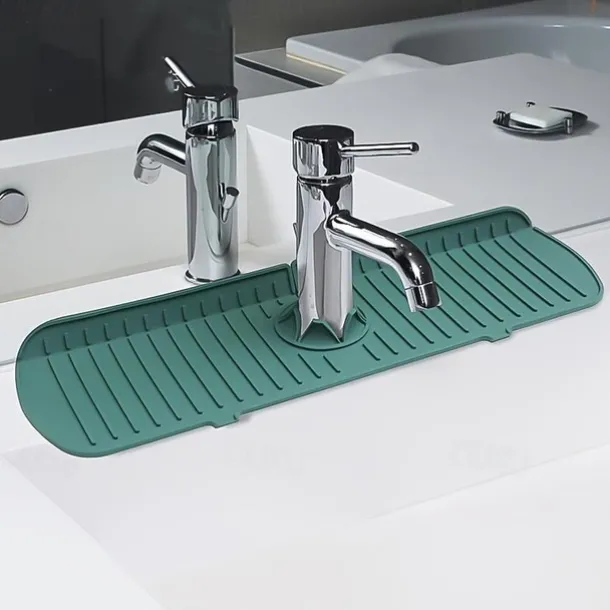 1pc Silicone Faucet Mat & Splash Guard, (Upgraded Design) Faucet Handle Water Drip Catcher Tray And Splash Guard, BPA Free Kitchenguard Sink Gadgets
