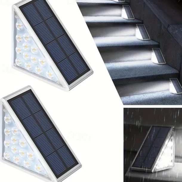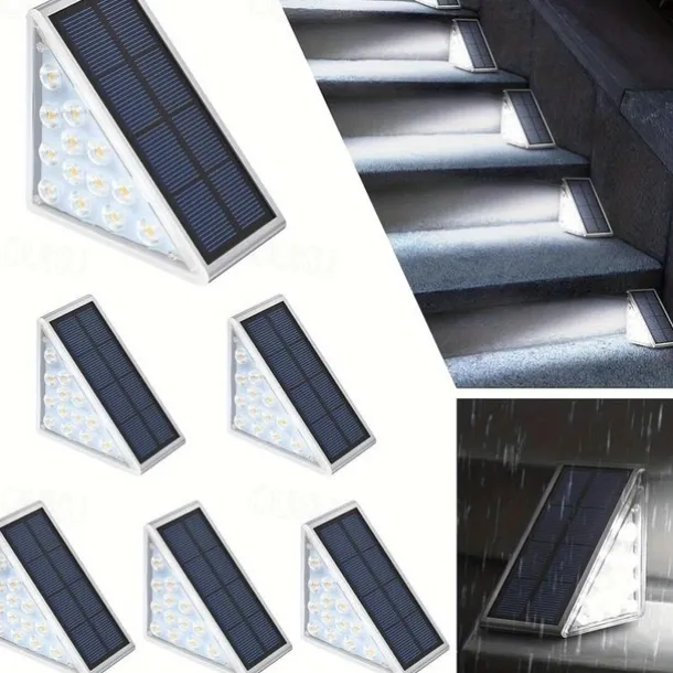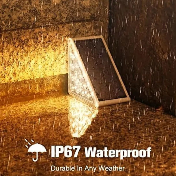 2/6pcs Solar Step Lights, Outdoor Deck Lights Triangle Solar Deck Lights IP67 Waterproof Auto on Off Decoration Lights for Stair Patio Yard, Driveway, Porch, Front Door, Sidewalk, Warm White