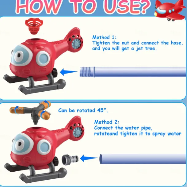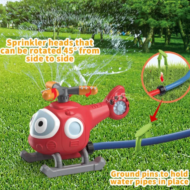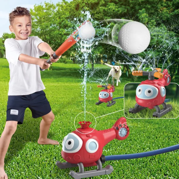 2-in-1 Water Sprinkler Baseball Helicopter Toy for Kids Outdoor Play Attaches to Garden Hose Summer Outside Toys Lawn Backyard Game Pool Party for Kids Boys Girls Gift