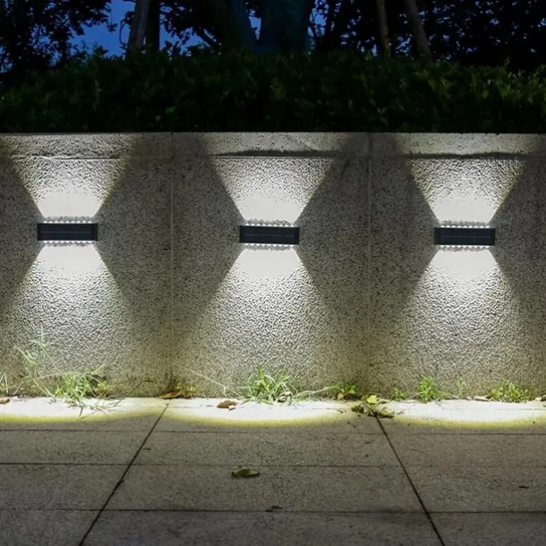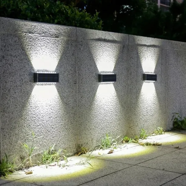 2 Packs LED Solar Wall Lights Beads Long Size with Emitting Light Up and Down, Fence Outdoor Courtyard, Garden Pathway Decoration Light