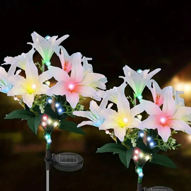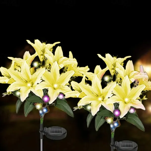 2 Pcs LED Outdoor Solar Lights Lily Simulation Flower Ground Insertion Lamp 7 Head Flowers 42 Beads Courtyard Garden Lawn Path Festival Wedding Party Atmosphere Decoration Lights