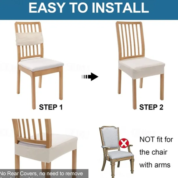 2 Pcs Smiry Waterproof Seat Covers for Dining Room Chairs Set of 4 Stretch Jacquard Removable Washable Chair Seat Slipcovers Protector No Rear Covers