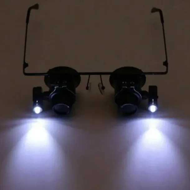 20X LED Magnifier Glasses Double Eye Jewelery Watch Repair Tools Lamp Loupes Eyewear Magnifying Glass Light