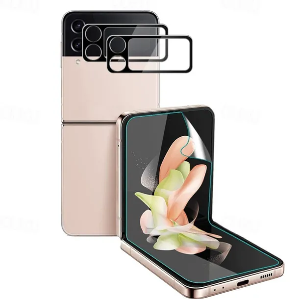 [2+2Pack] Screen Protector + Camera Lens Protector For Samsung Galaxy Z Flip 7 Z Flip 6 Z Flip 5 Z Flip 4 Z Flip 3 TPU Hydrogel 9H Hardness Anti Bubbles Anti-Fingerprint High Definition Explosion