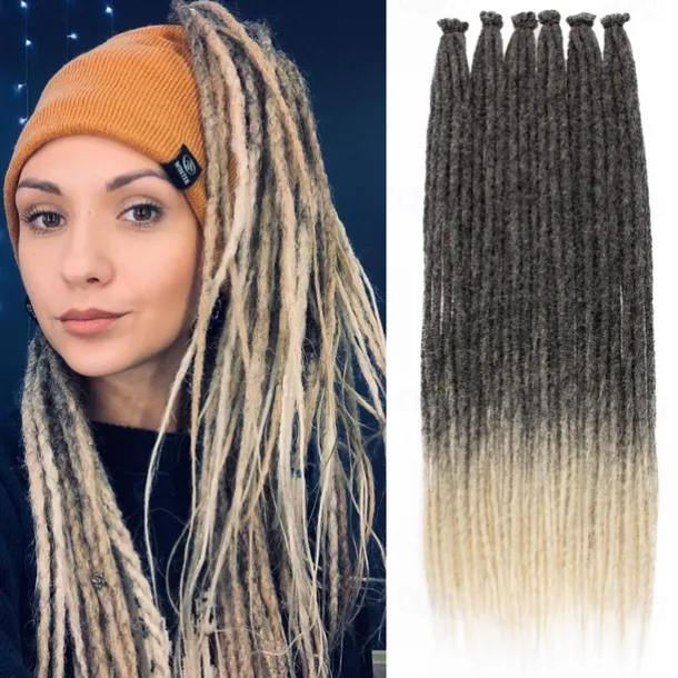 24 Inch Synthetic Dreadlock Extensions 20 Strands Hippie Single Ended Dreads Ombre Blonde 0.6 cm Width Loc Extensions Reggae Style Crochet Hair for Women