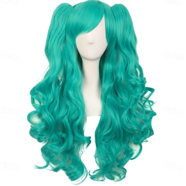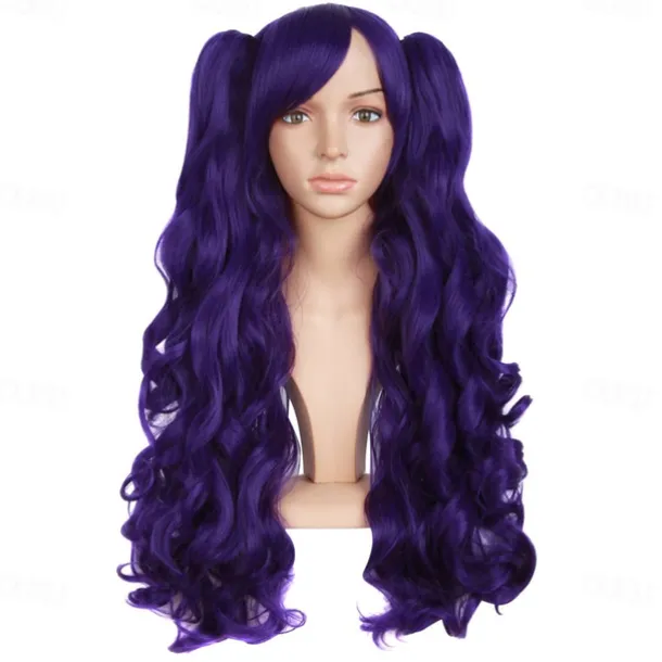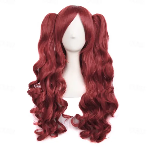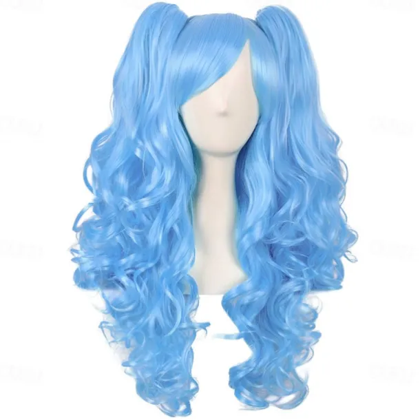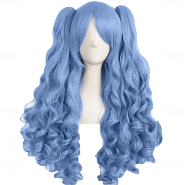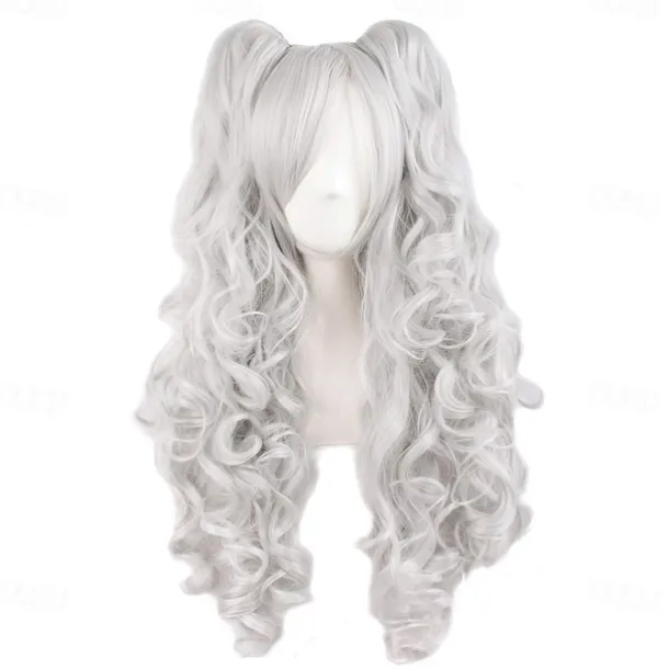 28 Inch/70 cm Lolita Long Curly 2 Ponytails Clip on Cosplay Wig