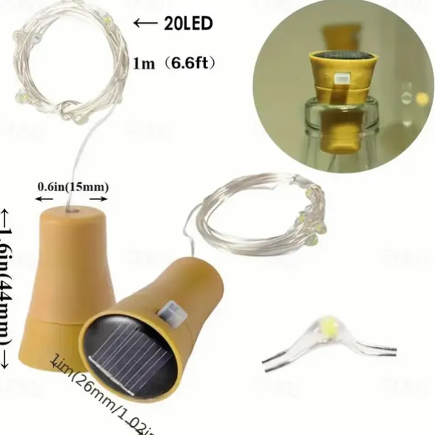 LED Beads Quantity: 20, Light Color: Warm White, RGB, Blue, White, Power Supply: Solar Energy, Type: String Lights, Style: Bottle Lights, Features: Waterproof, Christmas Wedding Decoration, Quantity: 5pcs, Voltage (V): Solar Powered, Initial Lumens (lm): 3000, Length: 2m, Mode: 1(On / OFF), Shape: Geometric, Occasion: Wedding, Party / Banquet, Outdoor,
