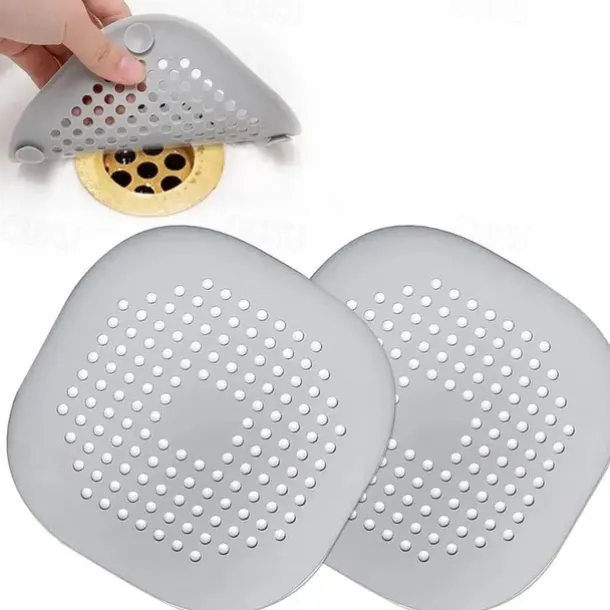 2pc Drain Hair Catcher With Suction Cup Durable Silicone Square Drain Cover For Shower Anti Sink Clogging Floor Cover Shower Drain Hair Outlet Filter For Bathroom Tub And Kitchen